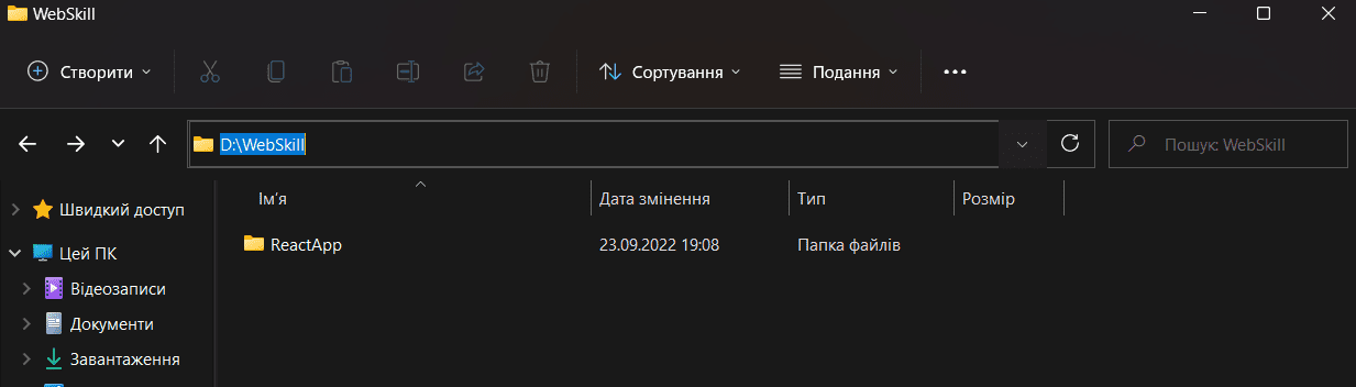 Після виконаних дій, заходимо в файловий провідник, та вверху вставляємо наступне: